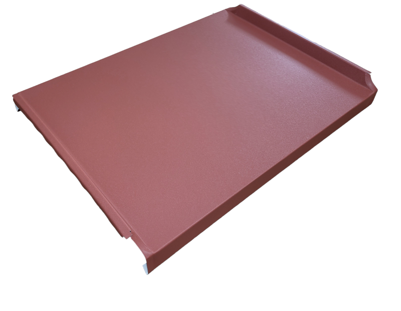 Panel z dwoma rąbkami górnymi attyki ze stali powlekanej. Jest to panel obróbki attyki o długości krycia 53cm. Panel ten ma 2 górne rąbki. Taką obróbkę stosuje się do zamknięcia paneli attyki w momencie, gdy panelem podstawowym dojdziemy do narożnika lub innego elementu zakończonego dolnym rąbkiem. Oba rąbki są zacięte w łezkę i przygotowane do zaklepania i zamknięcia. Haftry mocujące są produktem do zakupienia oddzielnie, nie są częścią paneli.