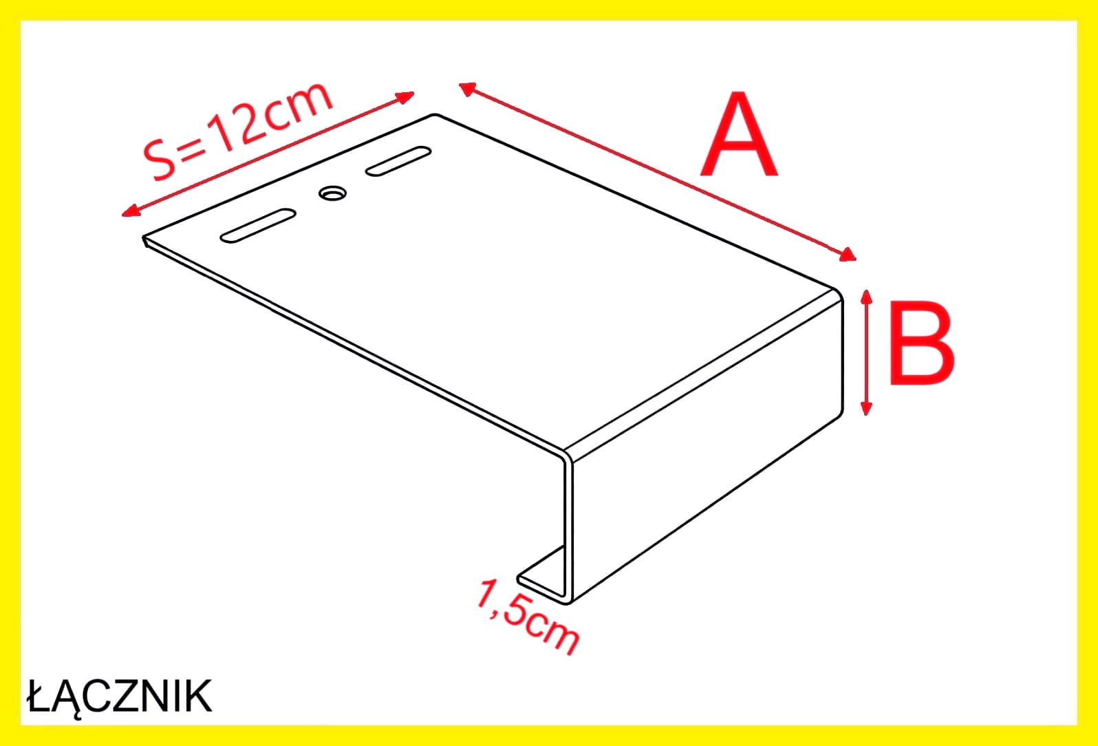Łącznik należy kleić oraz dodatkowo mocować mechanicznie, co gwarantuje stabilność połączenia i odporność na pracę materiału. Szerokość łącznika wynosi 12 cm, co zapewnia odpowiednie podparcie i bezpieczeństwo połączenia.