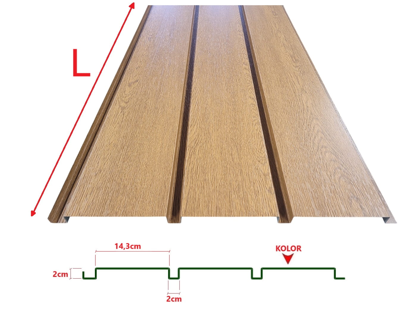 Lamele elewacyjne z blachy stalowej H-2cm | 2cm x 14,3cm