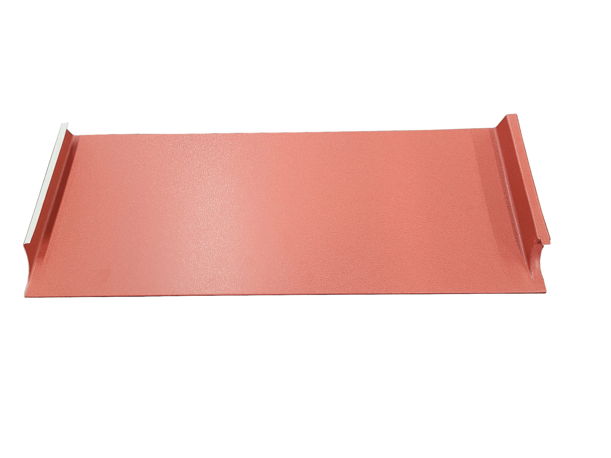 Wysokość rąbka to 27mm. Haftra mocująca jaką należy stosować do takich paneli ma 25mm. Należy pamiętać, że przy obróbce deski czołowej na rąbek, haki rynny muszą być nakrokwiowe. W przypadku haków czołowych niezbędne będzie zastosowanie stopek dystansowych. Haftry mocujące są produktem do zakupienia oddzielnie, nie są częścią paneli.