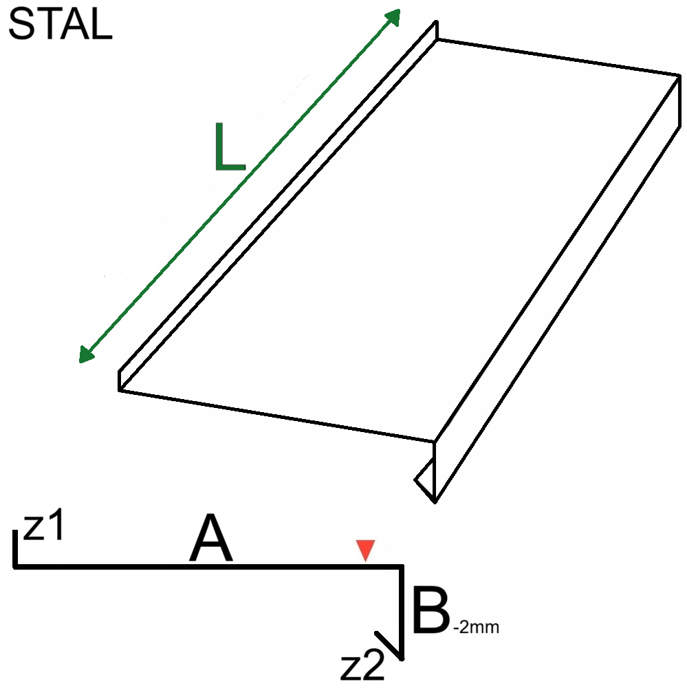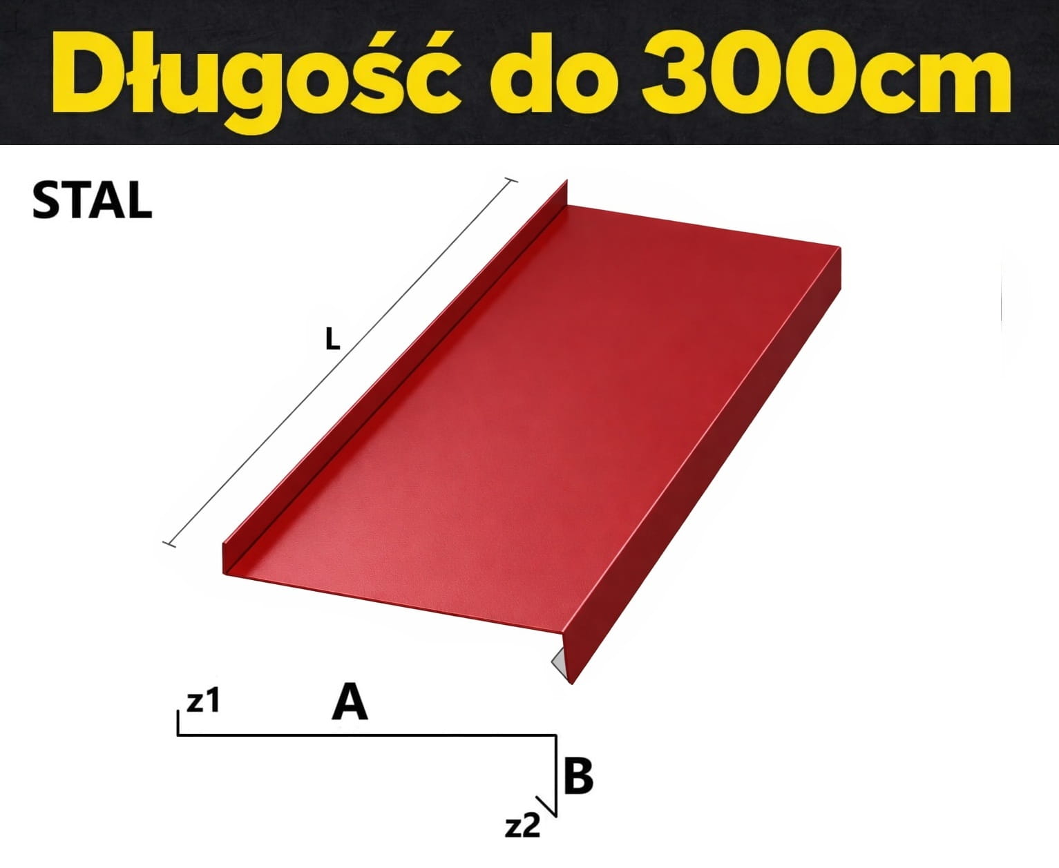 Parapet stalowy powlekany w kolorze według palety RAL. Parapety wykonane z blachy stalowej są do stosowania zewnętrznego. Parapet należy zamówić odpowiednio głębszy, tak aby wystawał poza obrys elewacji budynku. Zazwyczaj odległość kapinosów parapetu od ściany budynku przyjmuje się od 2,5cm do 4cm.