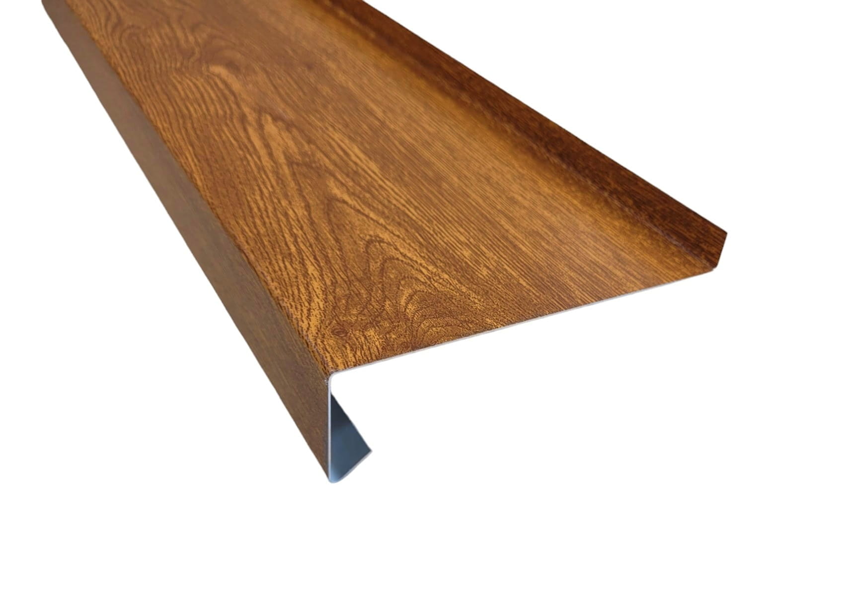 Parapet stalowy zewnętrzny w kolorze drewnopodobnym złoty dąb to trwałe i estetyczne wykończenie okien w budynkach mieszkalnych oraz użytkowych. Parapet wykonany jest z wysokiej jakości blachy stalowej powlekanej, dzięki czemu jest odporny na działanie warunków atmosferycznych. Podana cena dotyczy 1 sztuki parapetu o wybranych wymiarach – długości oraz głębokości (przekroju).
