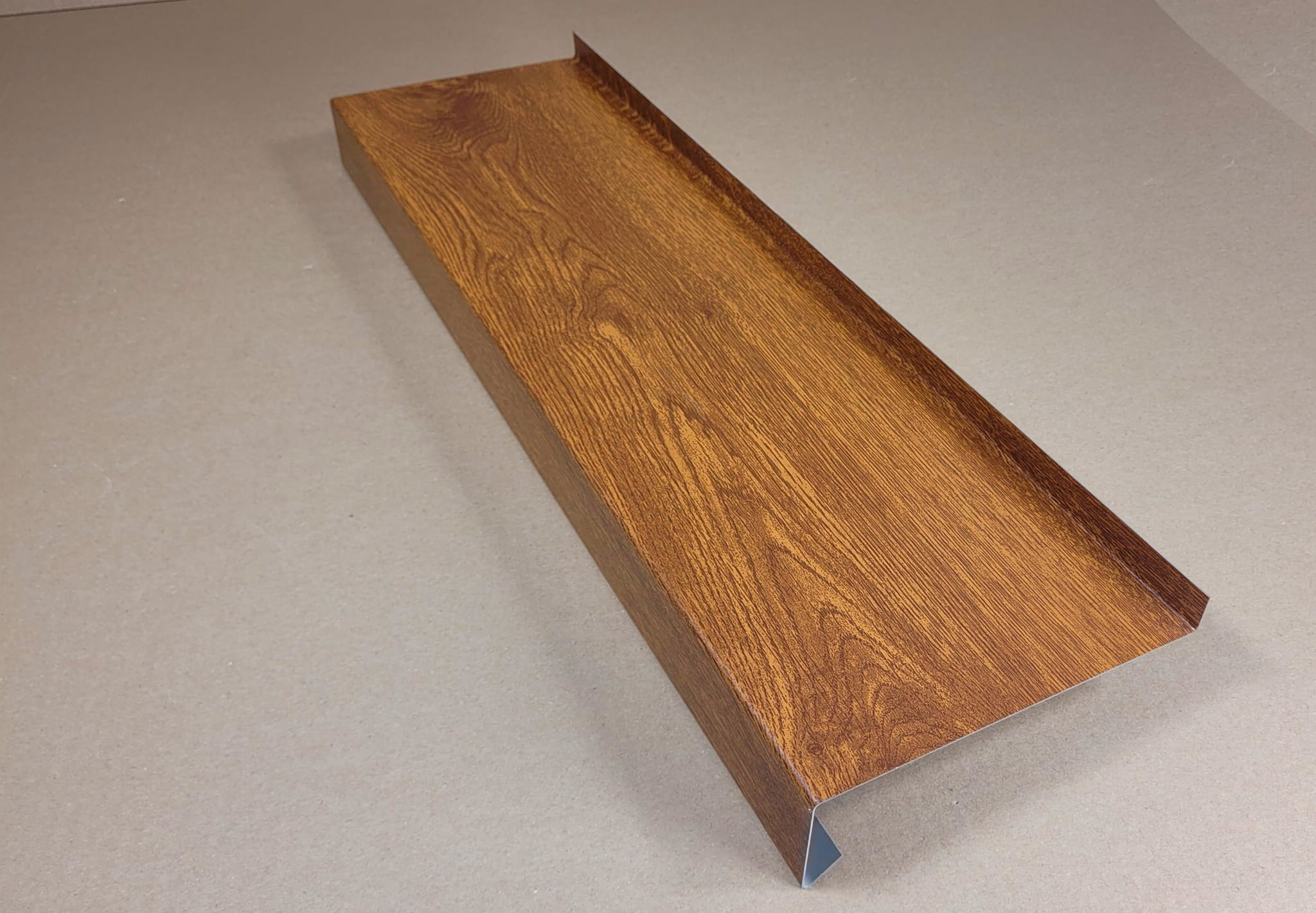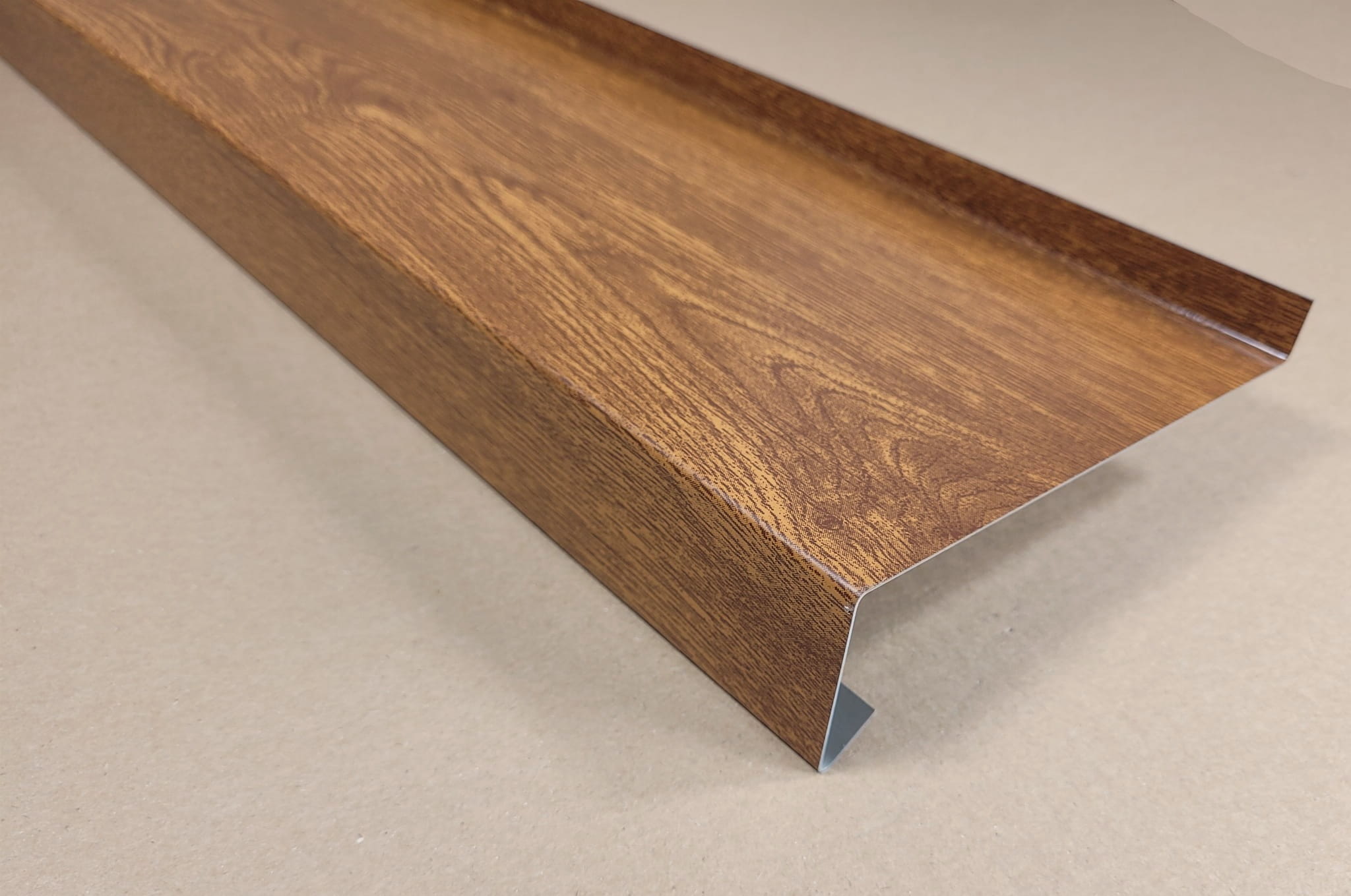 Parapet stalowy zewnętrzny drewnopodobny złoty dąb – parapet stalowy powlekany na wymiar