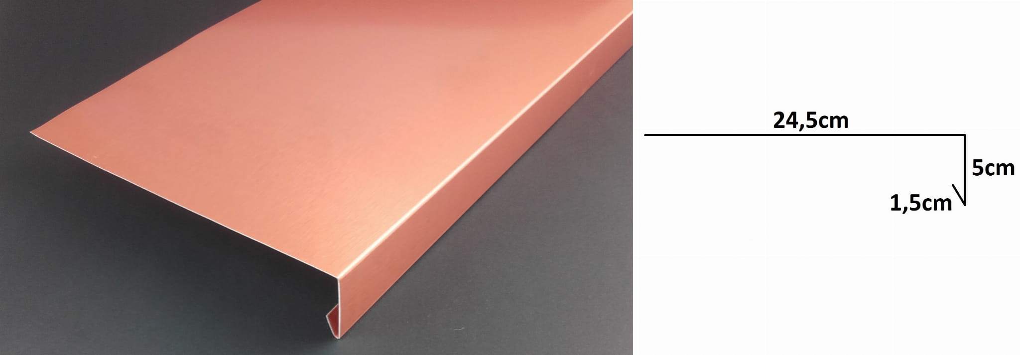 Pas nadrynnowy długi na dach płaski, taras lub balkon wykonany z blachy miedzianej. Dzięki powiększonemu wymiarowi długości leżącej na połaci dachowej, możemy go zastosować wszędzie tam, gdzie elewacja jest ocieplona warstwą izolacyjną. Pas nadrynnowy to niezbędny element wykończenia okapu dachu. Jest połączeniem pokrycia dachowego z rynną. Stosowany może być pod praktycznie każdą hydroizolację.