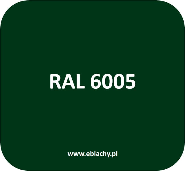Blacha płaska stalowa powlekana w arkuszach. Kolor zielony (butelkowa zieleń) RAL 6005, powłoka połysk. Blacha ta nadaje się do gięcia na obróbki blacharskie dachu, tarasu czy balkonu.