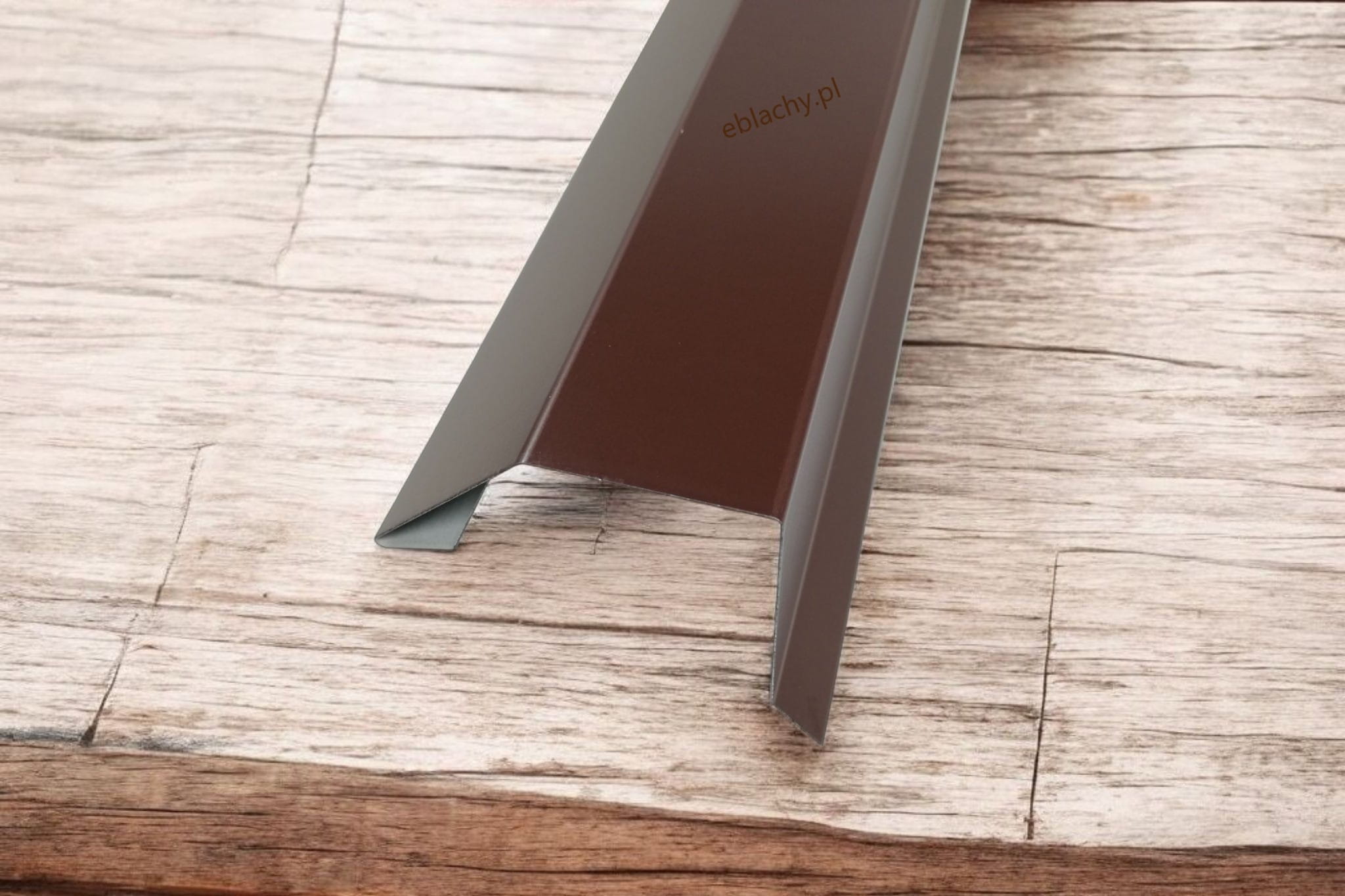 Wiatrownica aluminiowa powlekana pod gont bitumiczny i papę termozgrzewalną to specjalistyczny element obróbki blacharskiej, montowany od góry na deskę skrajną oraz na klin przylegający do niej. Takie rozwiązanie umożliwia prawidłowe i estetyczne wykończenie bocznej krawędzi dachu, szczególnie przy pokryciach bitumicznych.